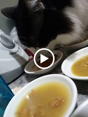 Ai entra a dica valiosa: ao dar o sache dos bichanos, coloque água misturada a carninha!
